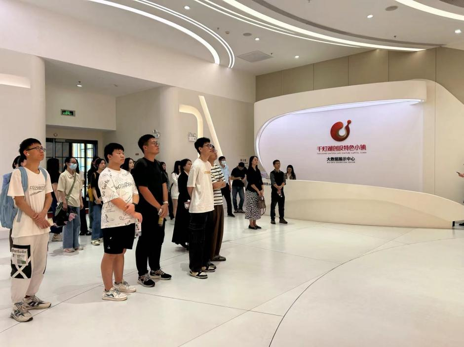 下午13点,一行人抵达千灯湖创投特色小镇,首先参观了小镇的展示中心,通过详细的介绍和生动的展示,毕业生们对小镇的定位、发展理念和取得的成果有了初步的了解。随后,大家在小镇工作人员的带领下,实地走访了多家入驻的金融机构,包括欧时商务服务(佛山)有限公司、北京互联企信信息技术有限公司广东分公司等。