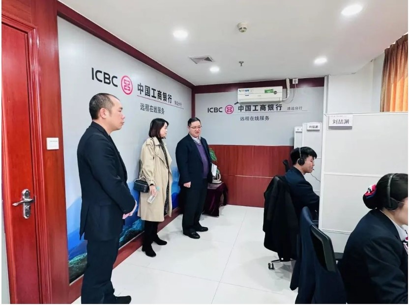 会后,公司一行参观了中国工商银行清远分行的远程在线服务线上营业厅服务流程,深入了解银行智能化转型成果和线上柜员岗位工作场景。