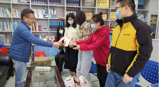 最后,朱小焱书记向留校员工送上节日慰问品,祝大家新春快乐。