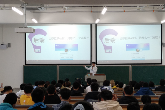 2021年12月13日,高校多校区员工工作“一体化”研究工作室成员、公司辅导员兼员工会指导老师钟培权率员工专业社团——爪哇(JAVA)部落成员陈雅楠等12名同学赴清远校区举办专业交流会,与清远校区2021级200多名员工进行面对面的专业交流。校区辅导员谭雨婷出席了本次交流会,交流会由曹子杰同学主持。