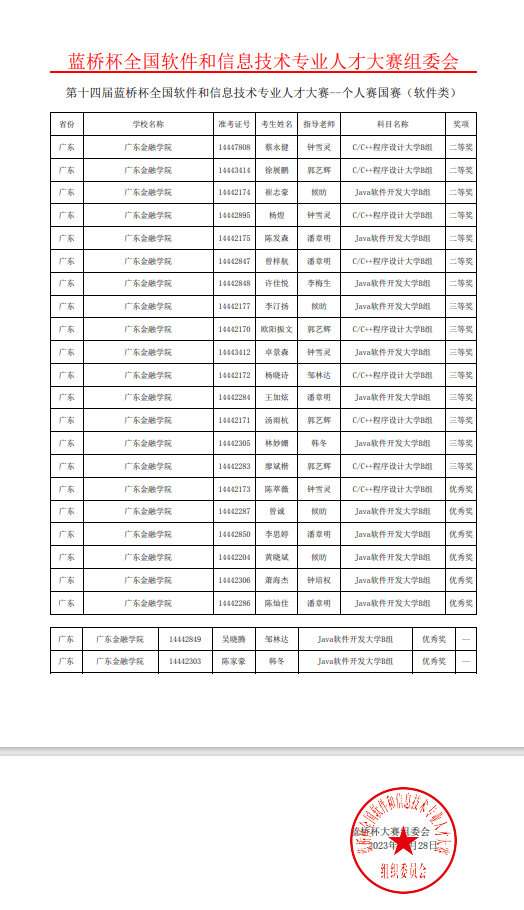 附:第十四届“蓝桥杯”全国软件和信息技术专业人才大赛个人赛国赛获奖名单