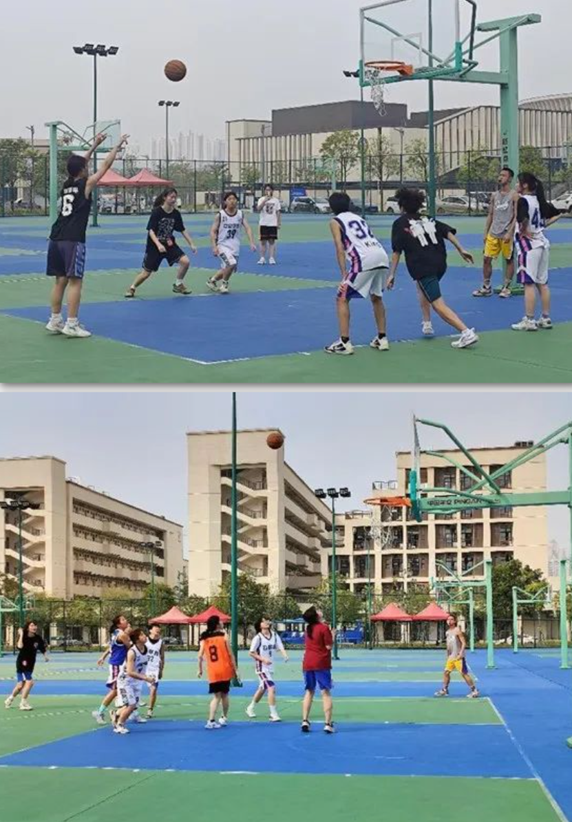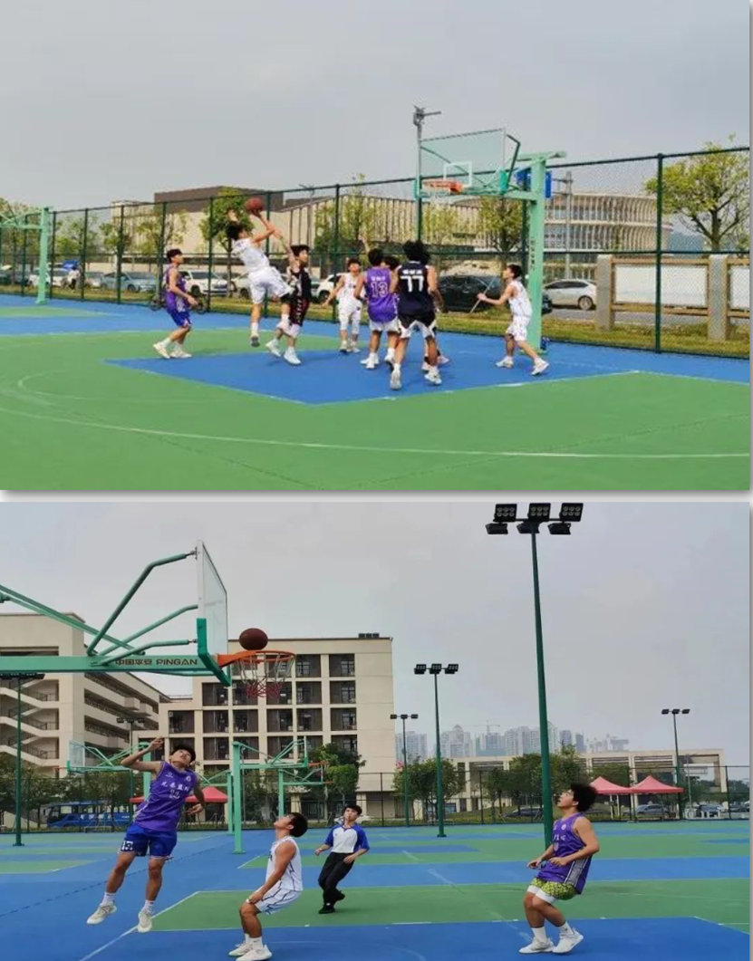 上午10点,穿着白色队服的校本部男子篮球队与紫色队服的清远校区男子篮球队开始了他们的激烈角逐。赛前,双方积极热身。随着裁判一声哨响,比赛正式开始。双方开始专注于比赛之中,紫队积极地抢断、快速地反击、犀利地进攻,对白队造成很大威胁。