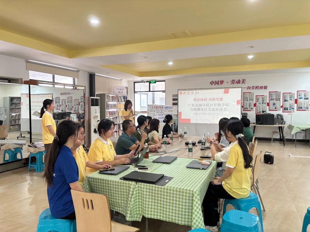 在实地参观社区建设及盆景文化后,实践团队以座谈交流会形式展开汇报。围绕 “走访见闻、感悟收获、协同结晶” 三大主题,结合实地调研经历,生动讲述了细滘社区的鲜活故事——从镌刻岁月印记的老旧建筑,到居民日常生活的温暖片段,立体呈现了社区的人文风貌。会上,实践队通过图文并茂的展示,向与会领导汇报了与社区共同打造的实践成果,直观呈现了工作推进的实效。