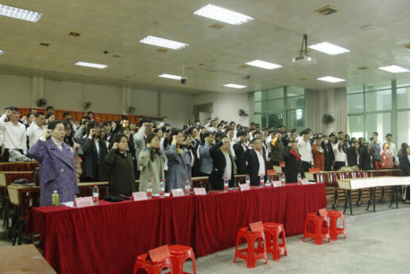 会上,各通表对象依次上台宣读本人的入党志愿书,各转正对象依次上台宣读本人的入党转正申请书。在聆听完所有对象的宣读后,员工党支部全体正式党员本着严谨认真的态度对本支部的通表以及转正对象进行投票表决。经一致表决:28名发展对象被通表为预备党员,29名预备党员转正为正式党员。接着,在陈婉琛同志领誓下,全体通表对象宣读了入党誓词和与会师生党员重温了入党誓词。