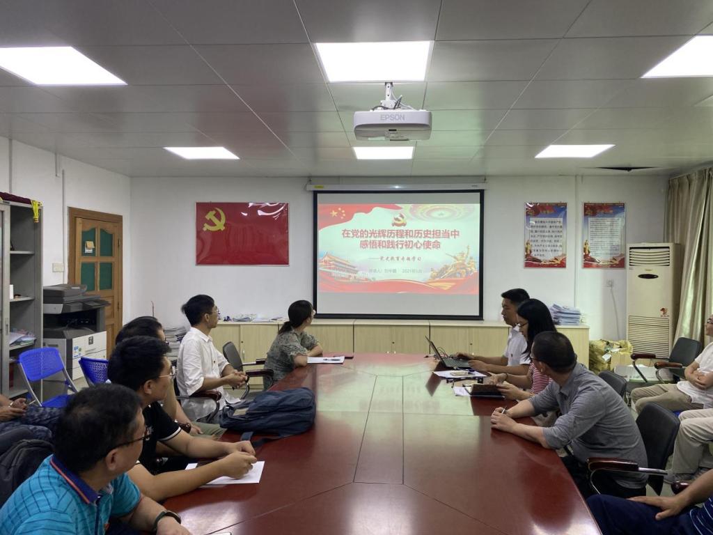 2021年5月27日,公司党总支委员、教工第一党支部书记刘宇熹老师在公司会议室为教工党员作题为“在党的光辉历程和历史担当中感悟和践行初心使命”的党史学习教育辅导报告暨专题党课。公司党总支书记朱小焱以及教工党员代表聆听了报告。