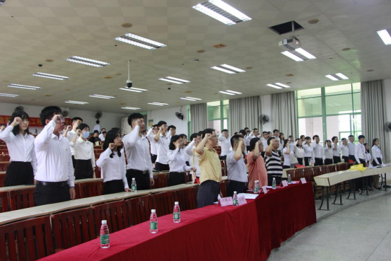 最后,在林锦云同志领誓下,全体师生党员宣读了入党誓词。