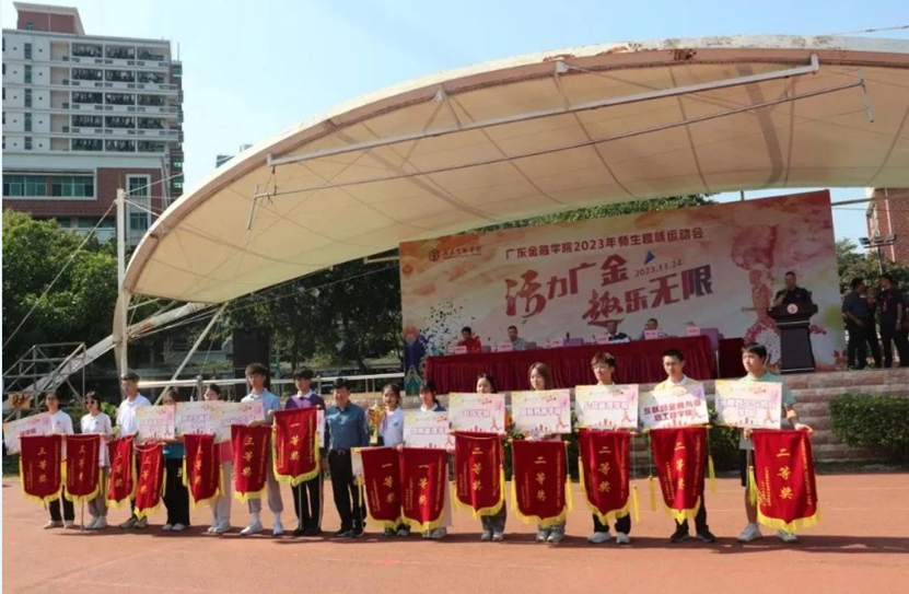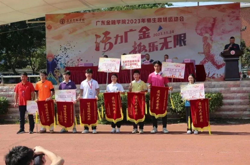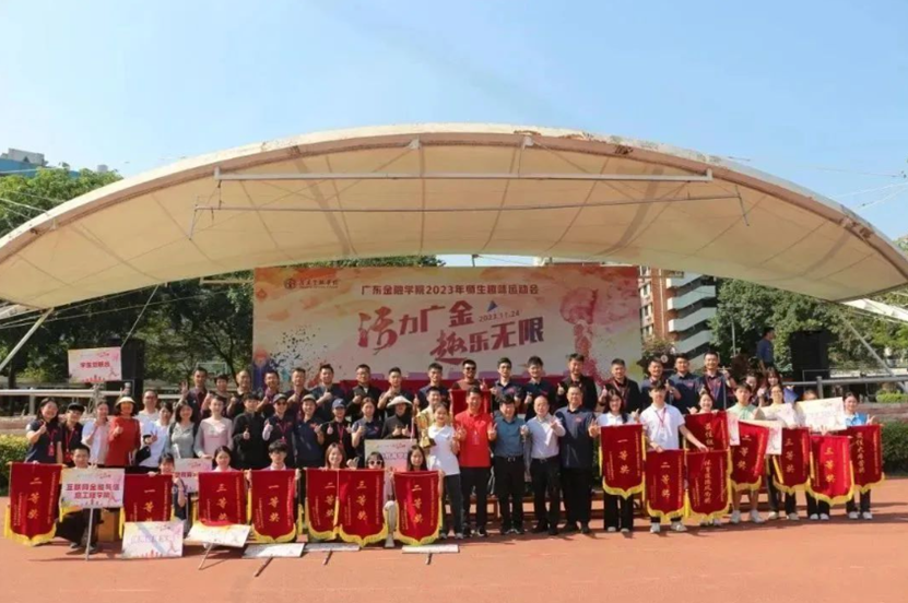 运动会最后一个项目是由各院员工完成一幅幅巨画条幅,将其拼合在一起,共绘“我爱广金”的大蓝图。