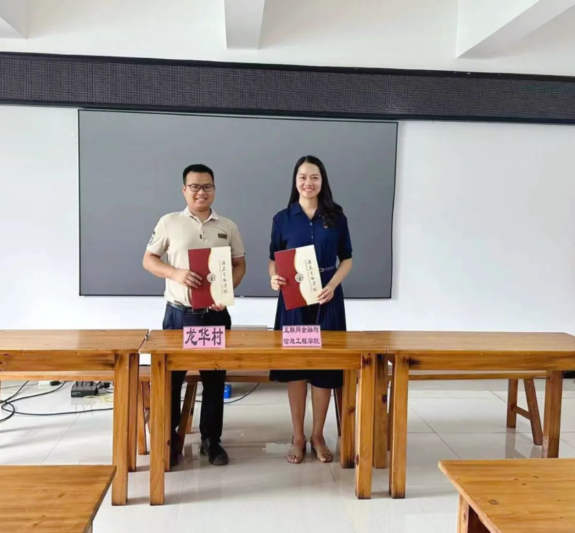 7月7日上午,公司领导班子带领青年教师和辅导员团队共同走访清远英德市龙华村,调研参观员工“三下乡”社会实践基地,并签约授牌。