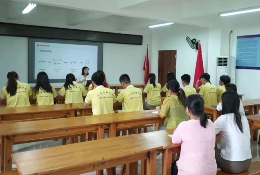 廖晓副教授作为带队老师之一为当地电商工作人员和公司“三下乡”队员授课,她全面讲解了电商运营的相关专业知识,并对直播过程中遇到的问题进行实地指导,给予解决方案,助力乡村振兴。
